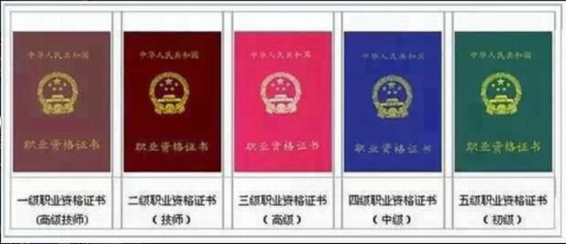 廚師職業(yè)資格證書;分為五個等級。